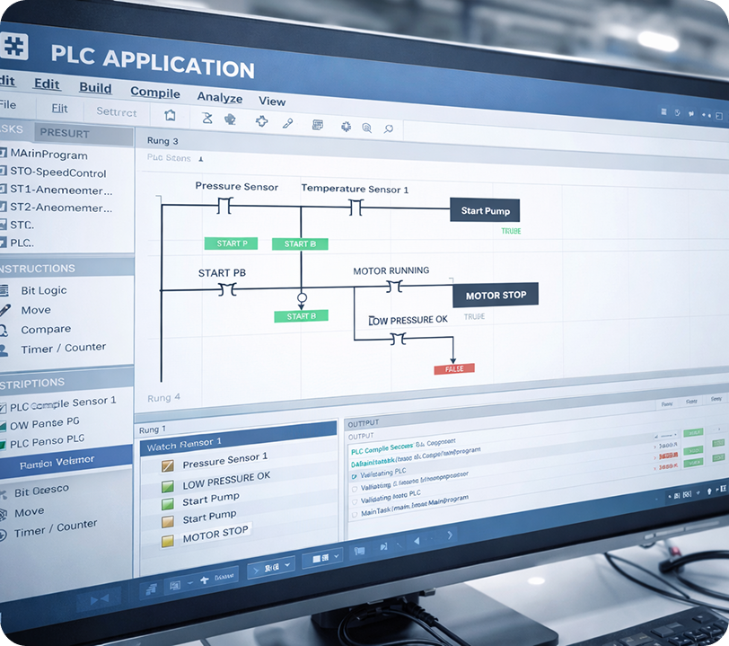 FAC programmeert PLC-applicaties voor de volledige automatisatie van koelinstallaties. De PLC-sturing vormt het brein van het koelsysteem en bepaalt mee de stabiliteit, de energie-efficiëntie en de zekerheid van het productieproces.